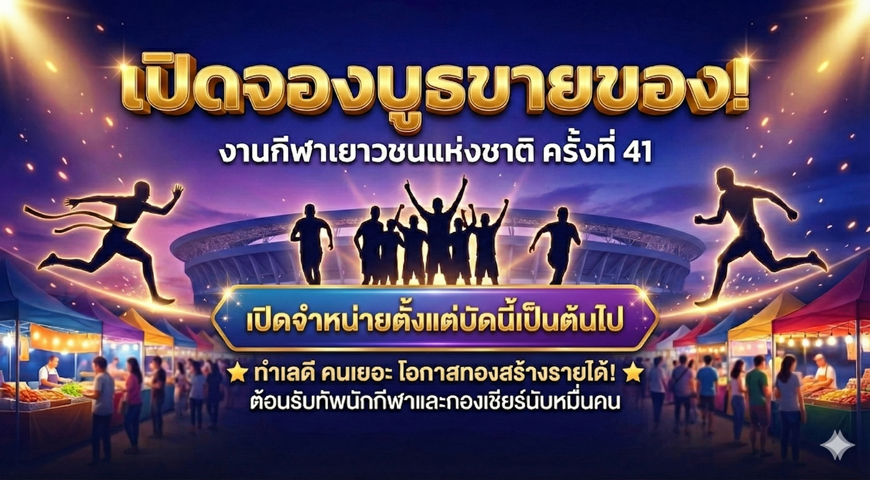 เปิดจองบูธขายของในงานแข่งขันกีฬาเยาวชนแห่งชาติ ครั้งที่ 41